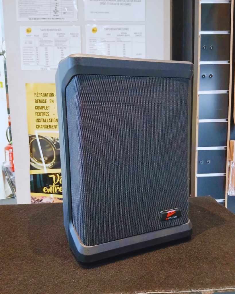 Amplificateur de classe D 50 Wrms avec woofer 6,5″ + 3 tweeters 3″ Entrée mini jack stéréo pour connecter un lecteur externe Lecteur USB intégré pour les fichiers (MP3, WAV, WMA, APE et FLAC) Fonction Bluetooth TWS Autonomie sur batterie : +/- 6 heures avec un volume à 50 % Temps de recharge : 2,5 heures
